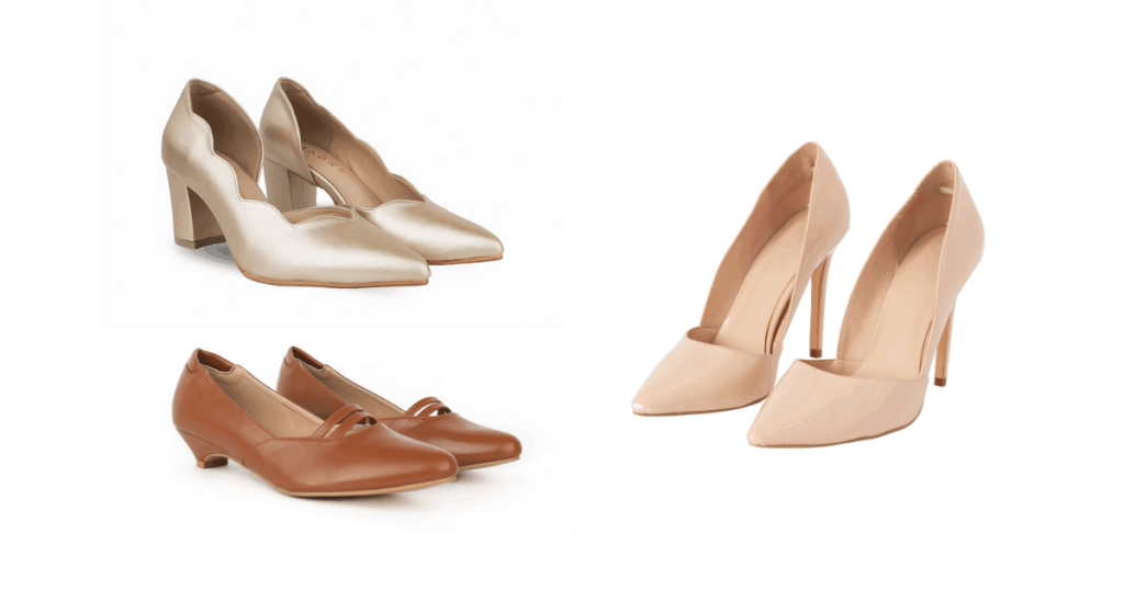 Tip: Pilih warna neutral seperti nude, beige atau hitam – lebih mudah dipadankan dengan pelbagai baju. Kalau tak biasa pakai tumit tinggi, mulakan dengan kitten heels atau block heels untuk keselesaan.