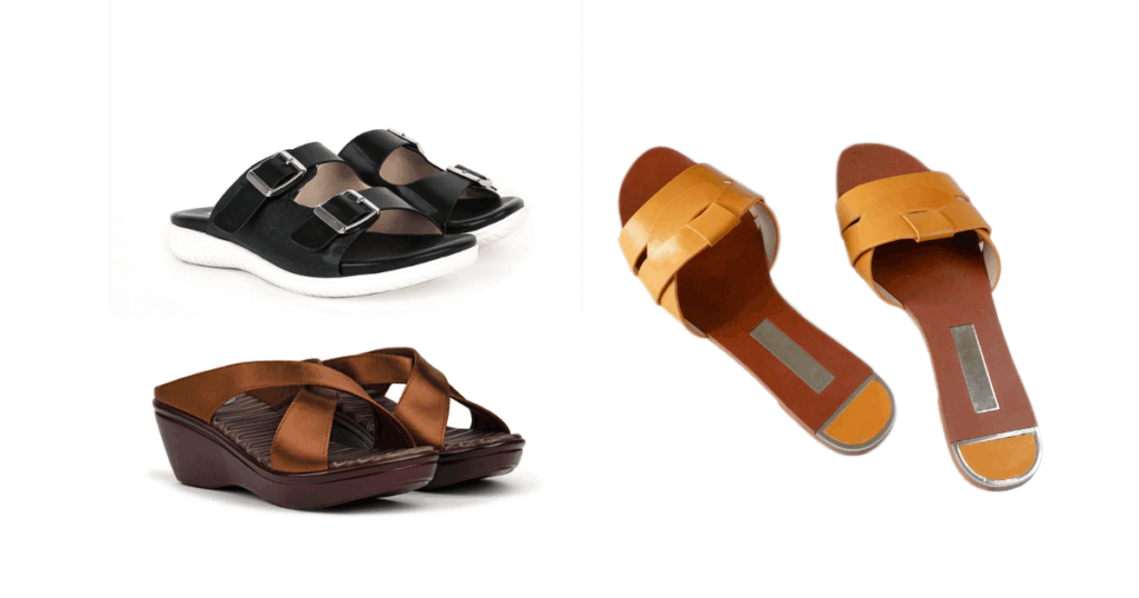 Tip: Cari sandal jenis strappy atau slides yang ada sedikit alas tapak (bukan terlalu nipis) untuk keselesaan kaki. Warna seperti putih, tan atau emas lembut mudah dipadankan dengan pakaian bercorak atau warna pastel.