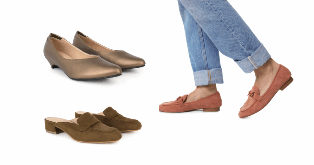 Untuk hari-hari biasa yang perlukan gaya kemas tapi tak mahu pakai tumit tinggi, flat shoes seperti ballet flats atau loafers ialah pilihan ideal. Ia gabungan antara keselesaan dan profesionalisme, sesuai untuk wanita bekerja atau pelajar yang aktif.